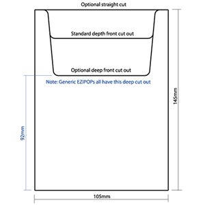 For Generics, please note that these are kept as a stock item and all have the deeper front cut out to show as much of your brochure as possible. The standard depth and optional straight cut are only available on custom printed EZIPOPs.